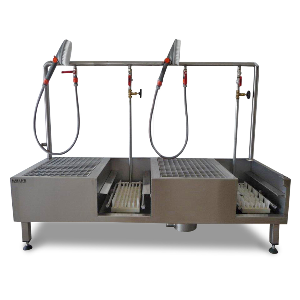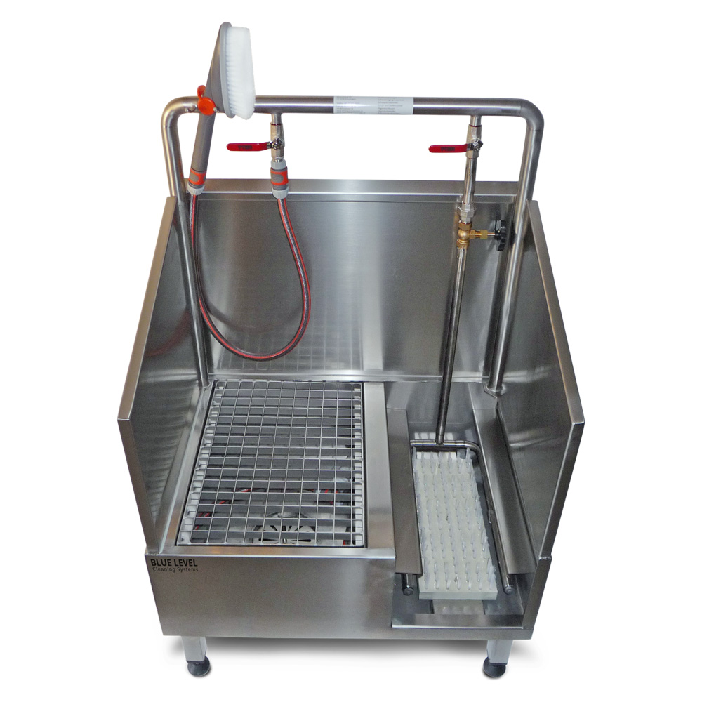 Die Arbeitsschuhe Reiniger Waschanlage bietet bis zu 3 Reinigungsplätze für die spritzfreie und gründliche Reinigung von Arbeitsschuhen. Der von Blue Level entwickelte Arbeitsschuhreiniger ist im Bereich der professionellen Reinigung von Arbeitsschuhen einzigartig. Unser ausgeklügeltes System erlaubt eine bequeme, spritzfreie Reinigung von stark verschmutzten Arbeitsschuhen und ist für den harten, täglichen Einsatz in Polizeikasernen, der Bauindustrie, Werkhöfen, Gärtnereien oder industriellen Produktionsbetrieben ausgelegt.