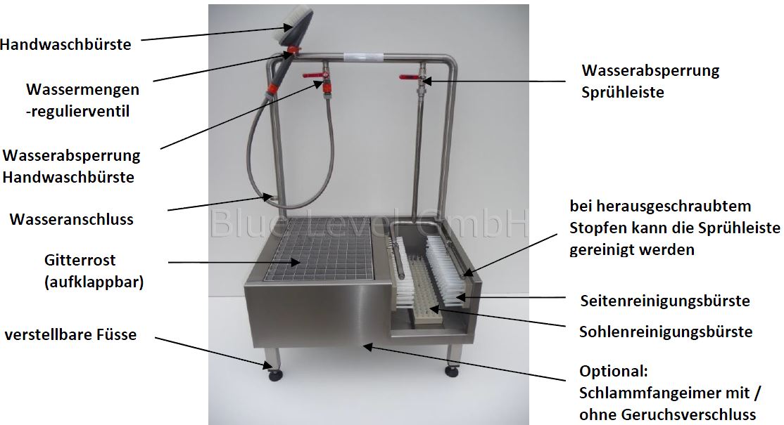 - Die Stiefelwaschanlage Edelstahl Profi ist ein professioneller Stiefelreiniger für den harten täglichen Einsatz auf Baustellen, in Polizei- und Feuerwehrstationen oder in Deponien und Kläranlagen.