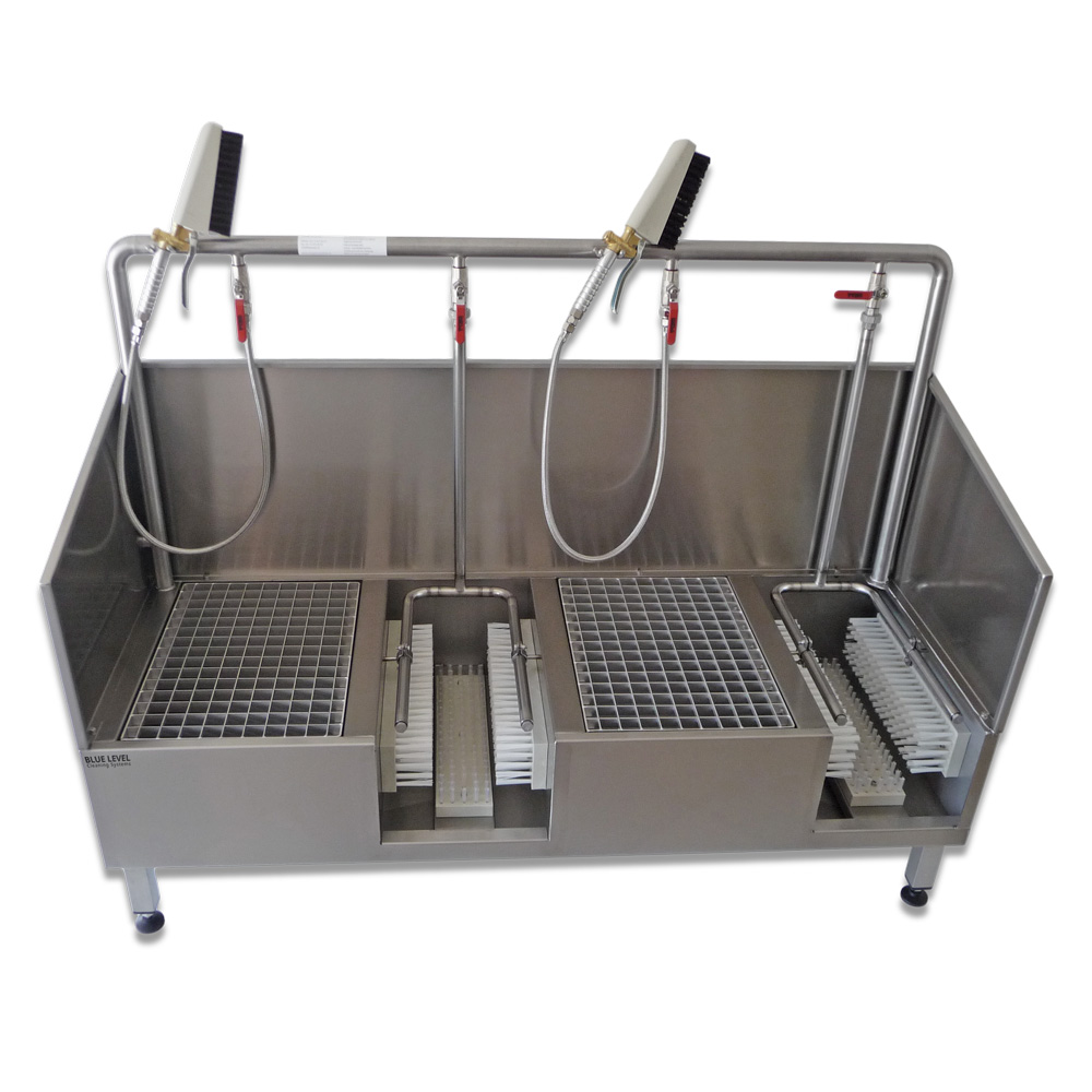 Die Stiefelwaschanlage Edelstahl-Profi bietet bis zu 3 Reinigungsplätze. Komfortable Stiefelreinigung, leicht zu säuberndes Gerät.